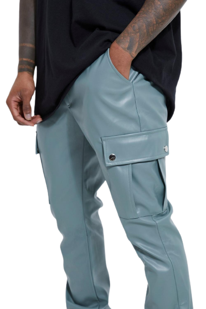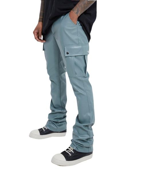 High Quality Streetwear Leather Stacked Jogger Sweatpants for Men with Canvas Fabric Breathable Design and Multi Pockets
