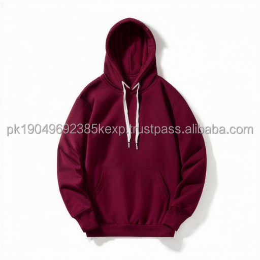 High Quality Streetwear Lightweight Cotton Plain Solid Pullover Burgundy Unisex Hoodies