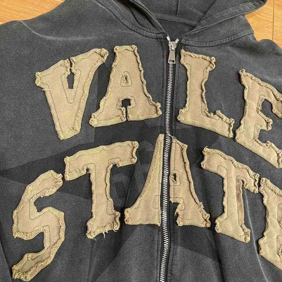 High Quality Streetwear Manufacturer Washed Patchwork Custom Logo Embroidered Zip up Distressed Applique Patch Hoodies Thermal