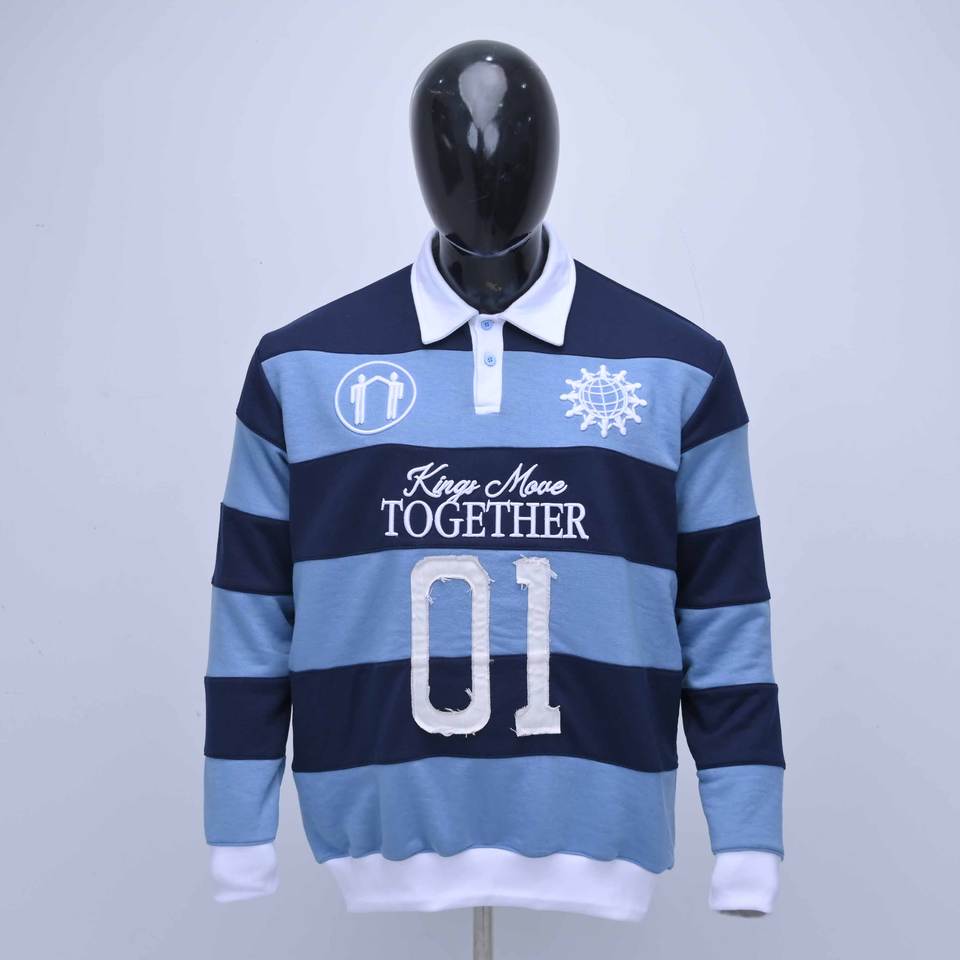 High Quality Streetwear Men Polo Shirts Rib Knit Embroidered Logo Long Sleeve Retro Vintage 100% Cotton Boxy Stripe Polo Shirts