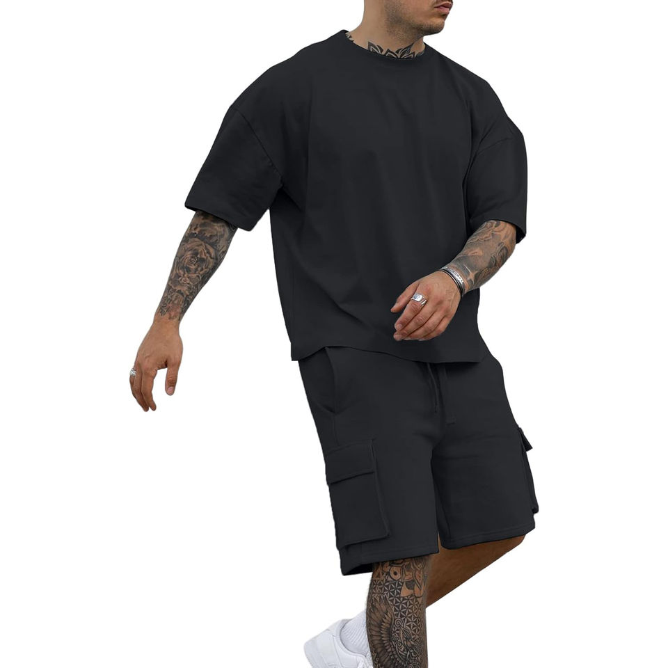 High Quality Streetwear Summer Custom Mens Short Set Plain/Blank T Shirt and Shorts Plus Size Men's Sets
