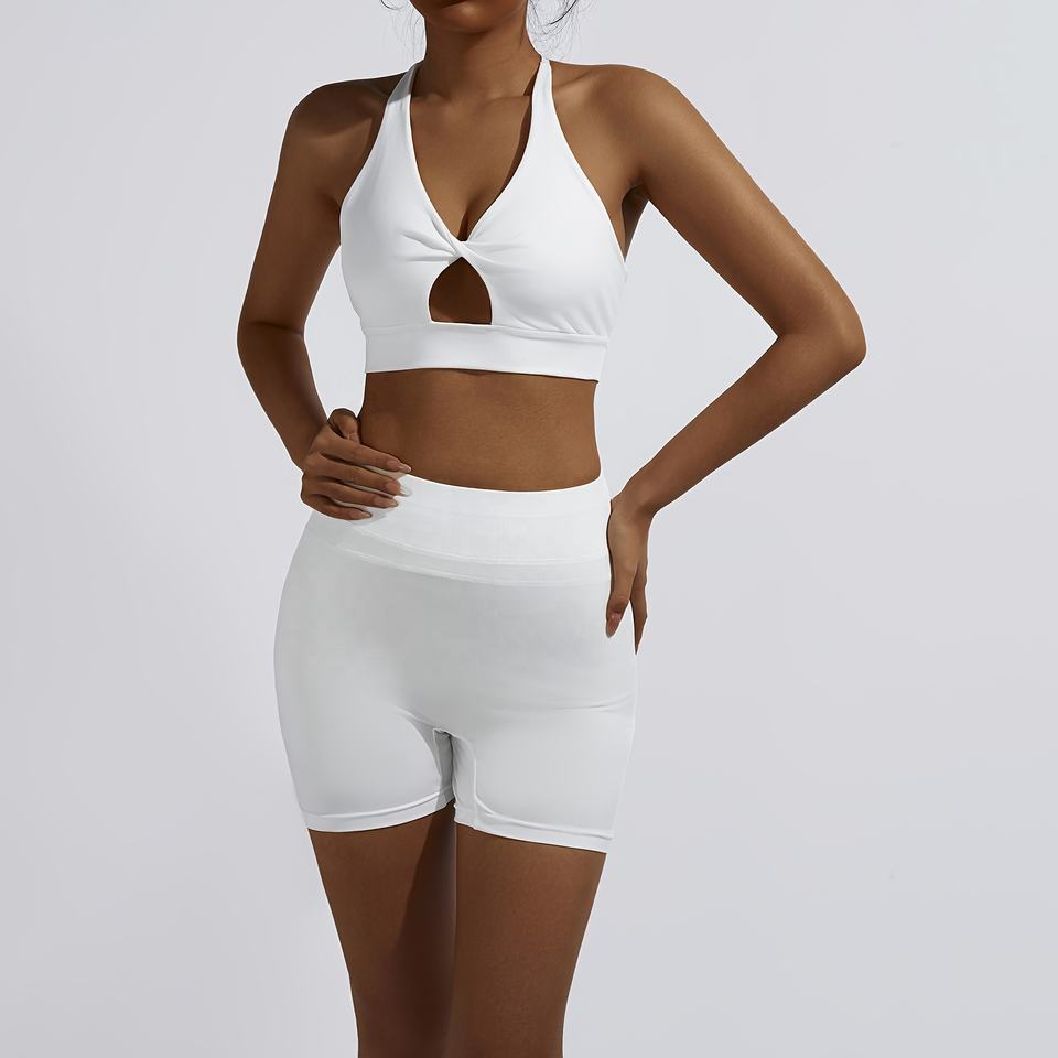 High Quality Stretchy Knit Custom Ribbed Racerback Cutout Crop Top and Scrunch Butt Biker Shorts Set for Women Gym