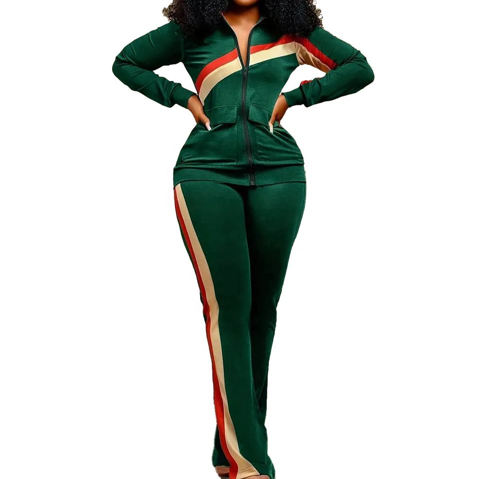 High Quality Striped Print Women Sweatsuit Customized Streetwear Tracksuits for Women 2024 New Zipper Jacket and Wide Joggers