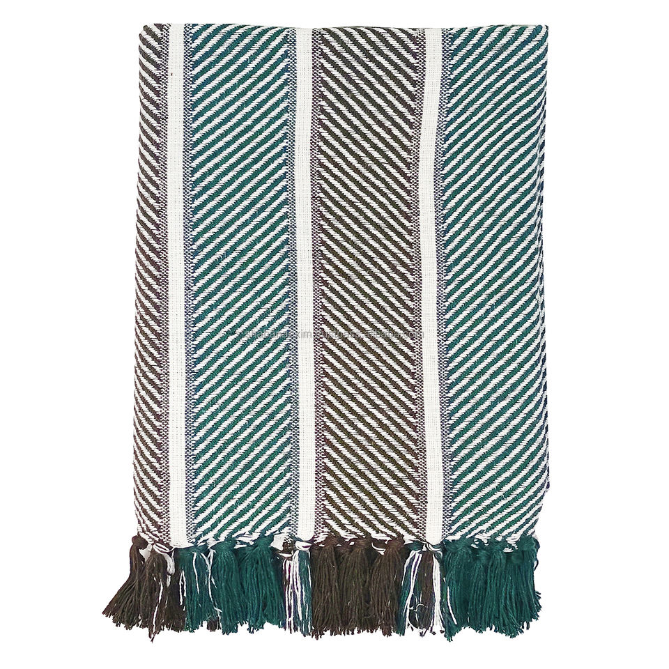 High Quality Striped Throw Blanket with Fringes for Sofa Bed Couch Indoor Home Decor Weave Textured Throws from India