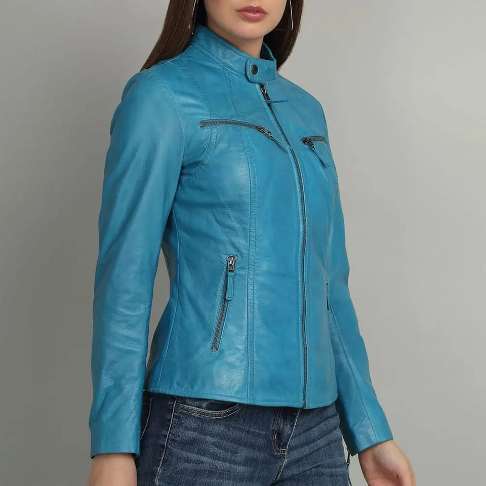 High Quality Stylish Women's Sheep Skin Leather Jacket Slim Fit Design Zippers & Pockets Waterproof Breathable Wholesale Winter