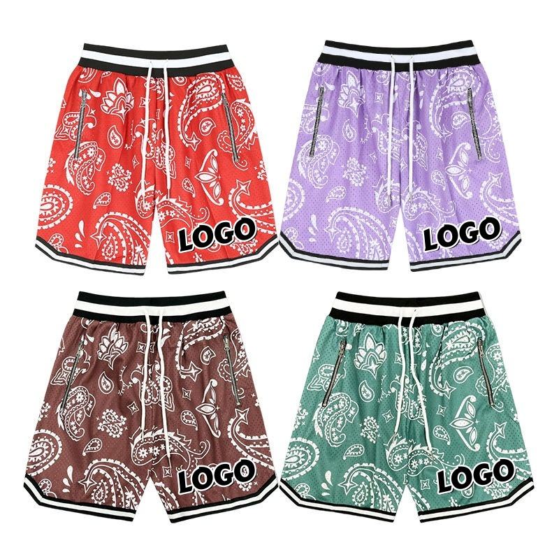 High Quality Sublimation Pattern Print Shorts With Zipper Pockets Breathable Polyester Double Layer Mesh ShortsDDP shipping