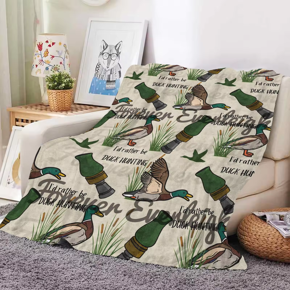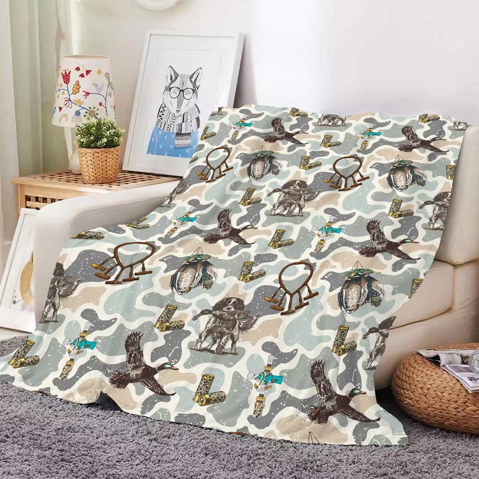 High Quality Sublimation Printed Animal Pattern Flannel Blanket Custom Design Camo Duck Throw for Bedding and Couch
