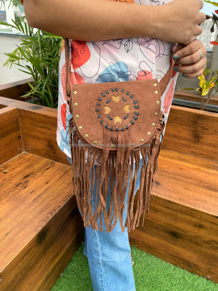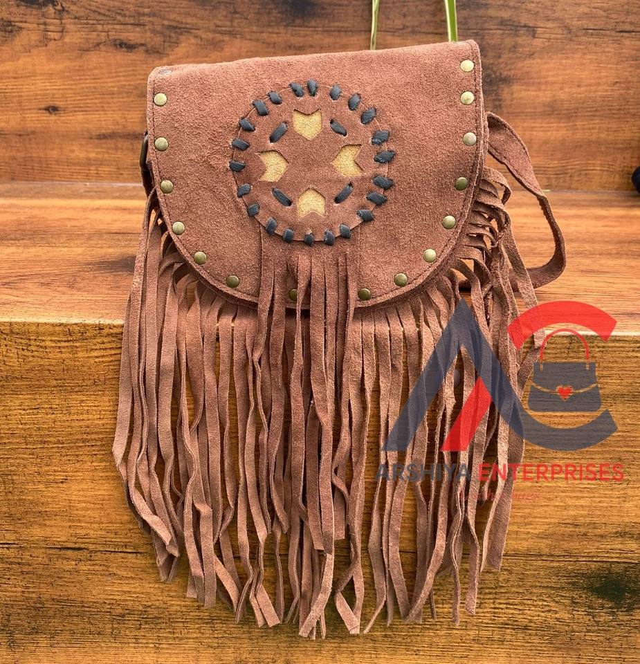 High Quality Suede Cowhide Leather Handbag for Women's Western New Luxury Genuine Leather Fringe Purse Fashion Shoulder Bag