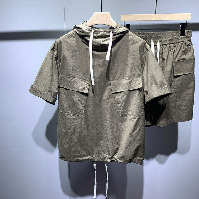 High Quality Summer Fashion Hip Hop Windbreaker Men's Set Streetwear Shorts Outfits Lightweight Breathable Set Men