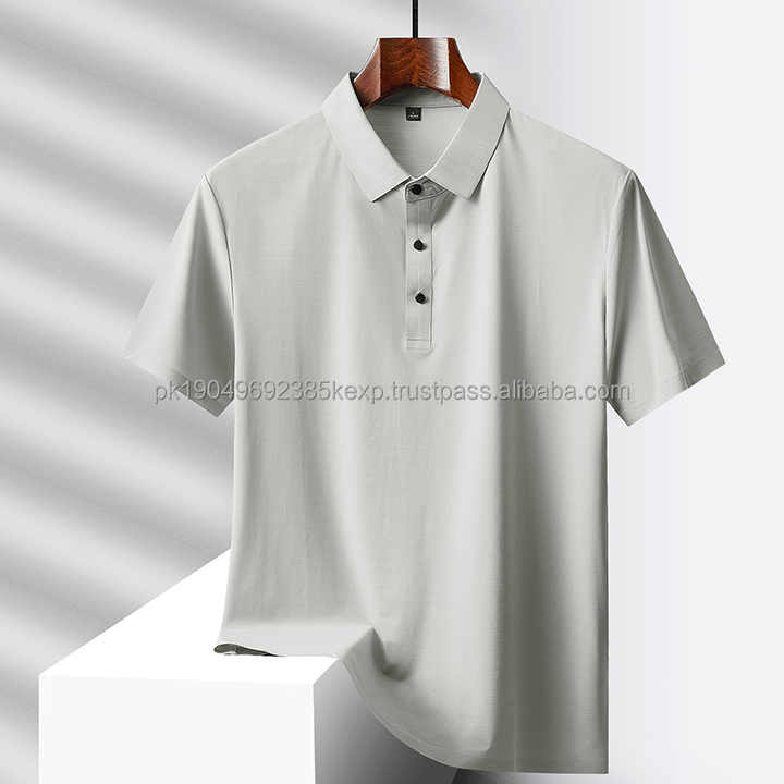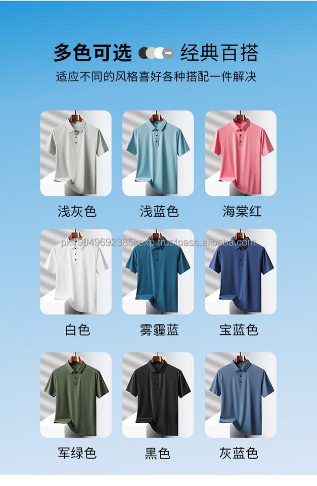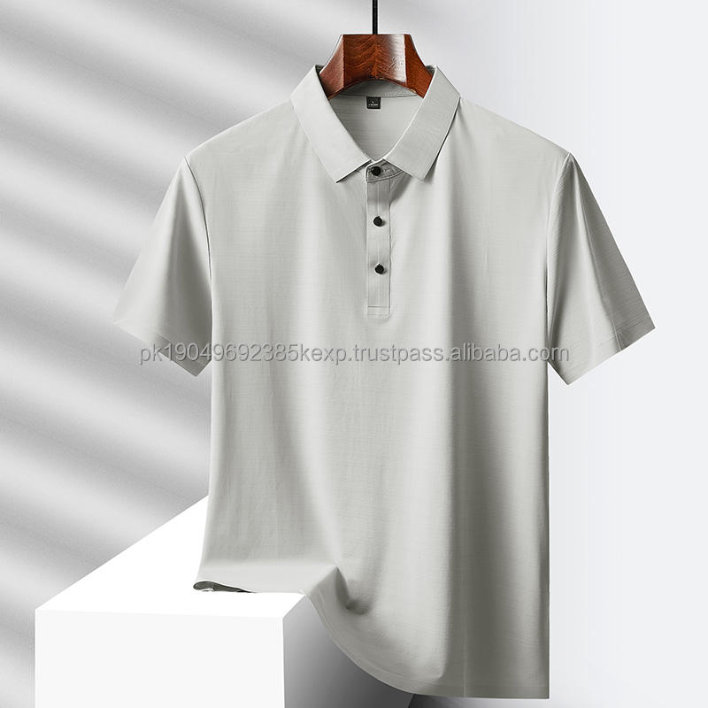 High Quality Summer Ice Silk Business Lapel T-Shirts Short Sleeve Polo Shirts for Man
