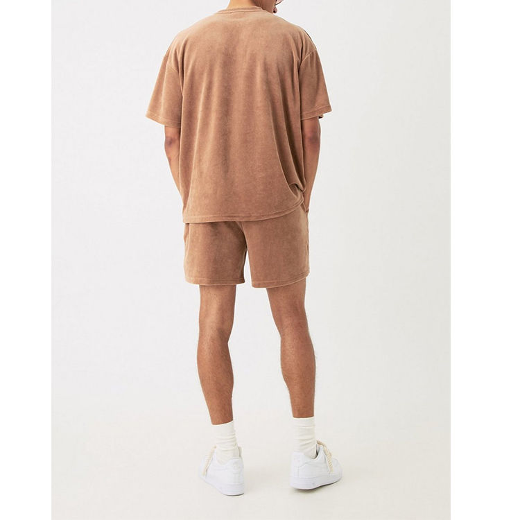 High Quality Summer Man Shorts Set O-Neck Short Sleeve Velour Oversized Printed T Shirt 10% Cotton Breathable and Plus Size