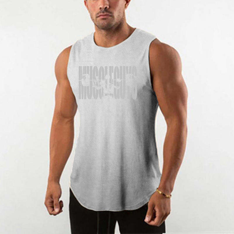 High Quality Summer Men's Knitted Casual Gym Tank Top Mesh Bodybuilding Fitness Muscle Singlet Sleeveless Slim Fit