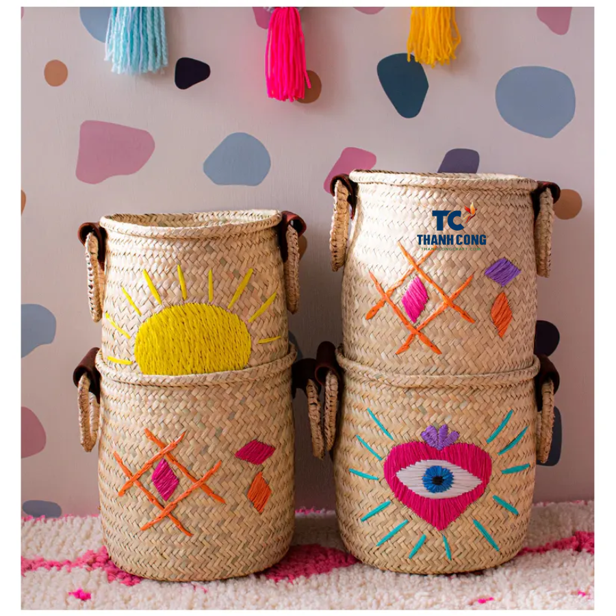 High Quality Sun Embroidery SEAGRASS BASKET Natural Handwoven Seagrass Nursery Basket Wholesale from Vietnam