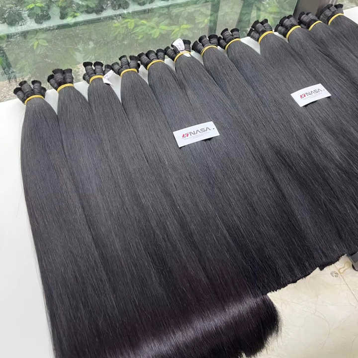 High Quality Super Double Drawn Vietnamese Human Hair 100% Virgin Black Hair Natural Hair Bulk Bleached Full/Thick Ends