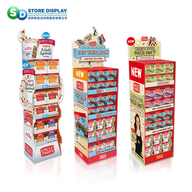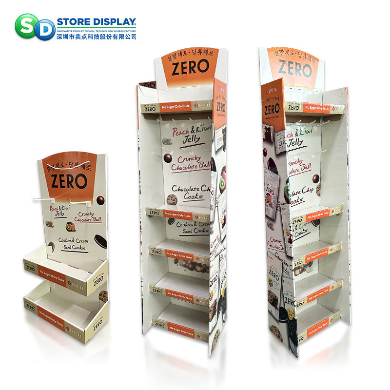 High Quality Supermarket Display Rack Cardboard Floor Display Shelf for Snacks Packaged Food Showcase Snacks Well