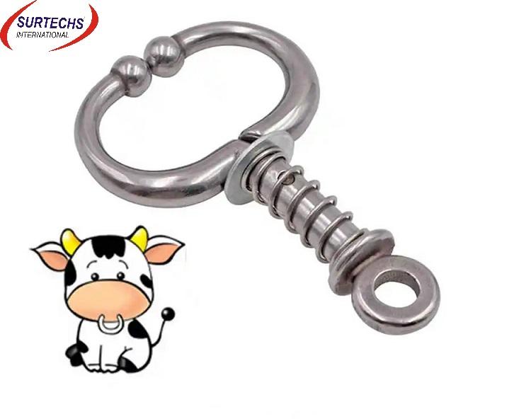 High Quality Surtechs Veterinary Nose Ring Spring Loaded Bull Nose Holder for Cow Cattle Buffalo Restraint Tools