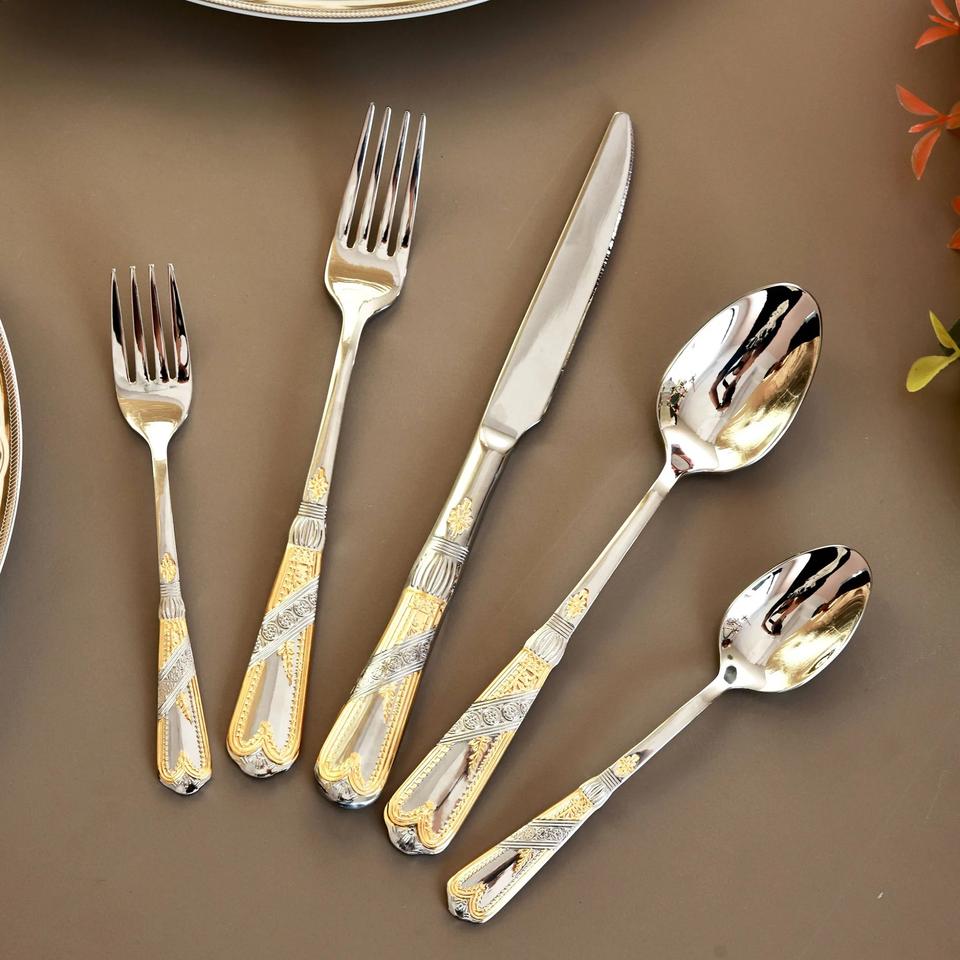 High Quality Sustainable Modern Metal Gold Plated Luxury Cutlery Set Four Including Spoon Fork Knife Butter Knife Party Wedding