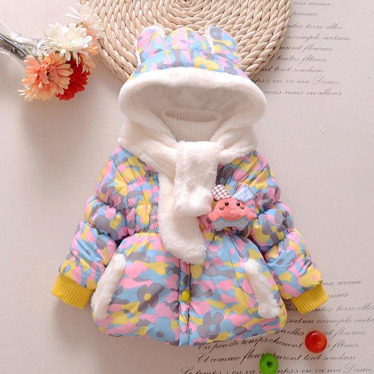 High Quality Sweet Winter Floral Printed Hooded Button Clothes Kids Coat for Girls