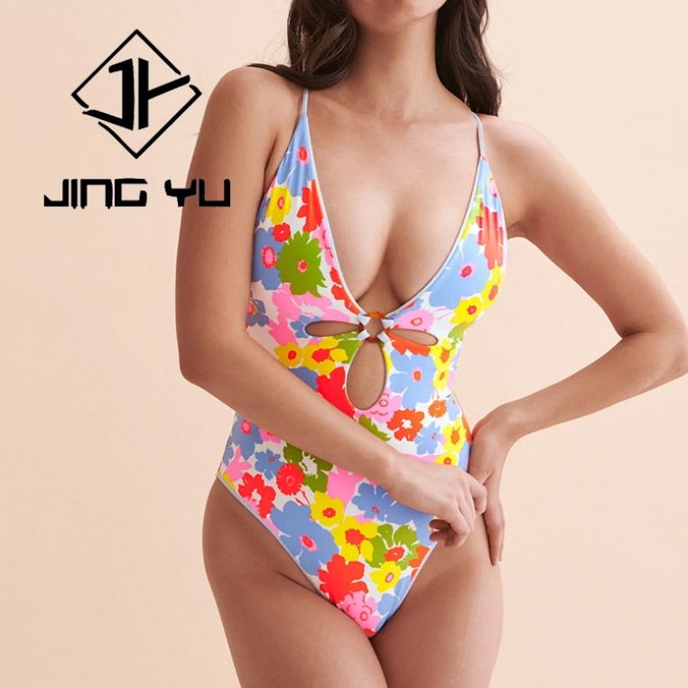 High Quality Swimsuit Hawaiian Print Swimsuit Custom Hollow Strap Nylon Swimwear Beachwear 2025
