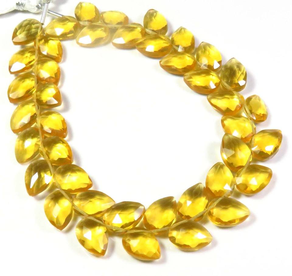 High Quality Synthetic Hydro Glass Quartz Faceted Loose 10x7mm Yellow Transparent Pear Beads 7.5" Strand Diagonal Drilled