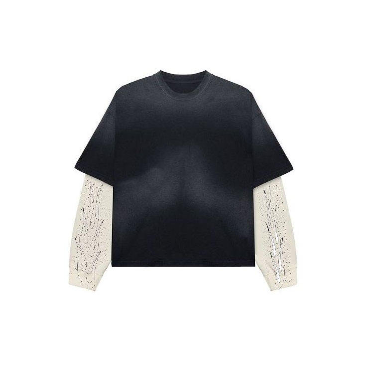 High Quality T-Shirt Heavyweight Cotton Distressed Drop Shoulder Tshirt Boxy 2 in 1 Long Sleeve T Shirt for Men