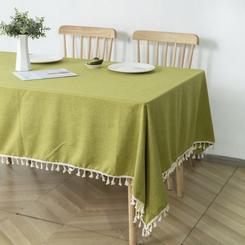 High Quality Tassel Tablecloth Nonwoven Modern Waterproof Floral Printed Square Faux Linen Texture Wrinkle-Free Home Party