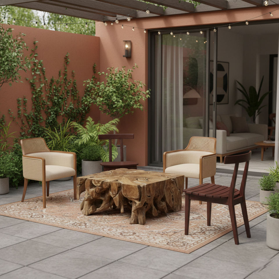 High Quality Teak Root Natural Rustic Wholesale Ditya Square Coffee Table Wooden Living Room Furniture Unique Organic Design