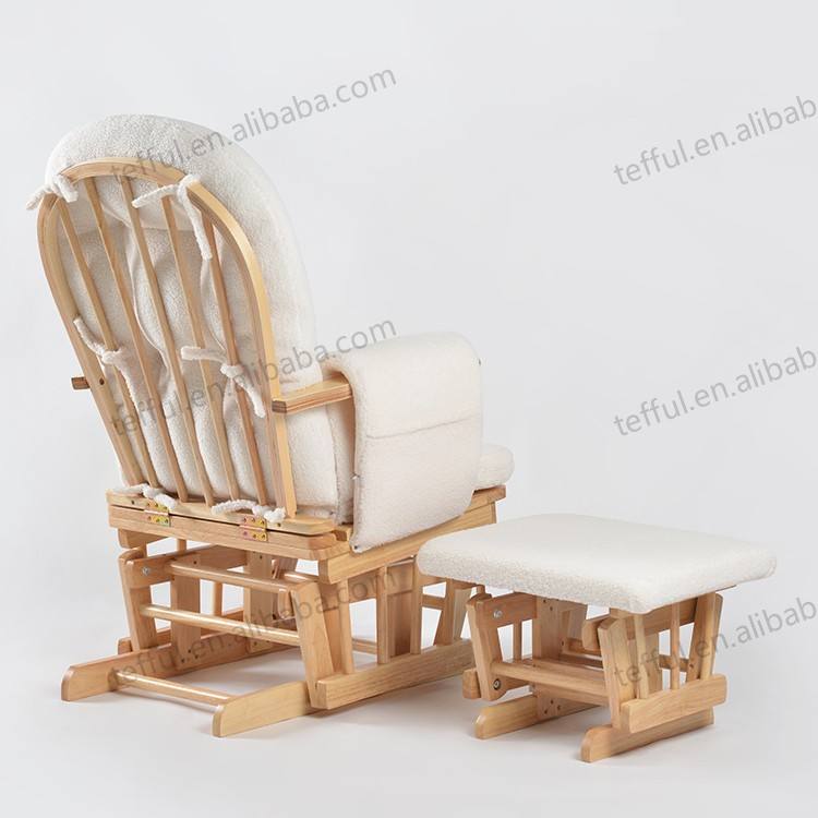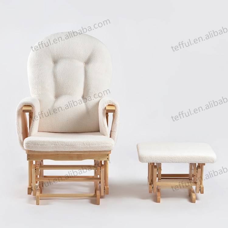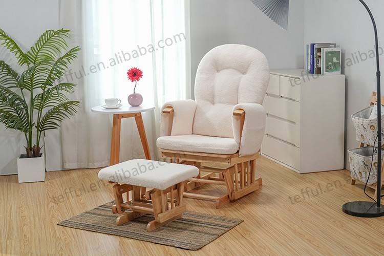 High Quality Teddy Upholstered Nursery Glider Chair Wooden Rocking Rocker with Ottoman for Living Room Relaxing Home Furniture
