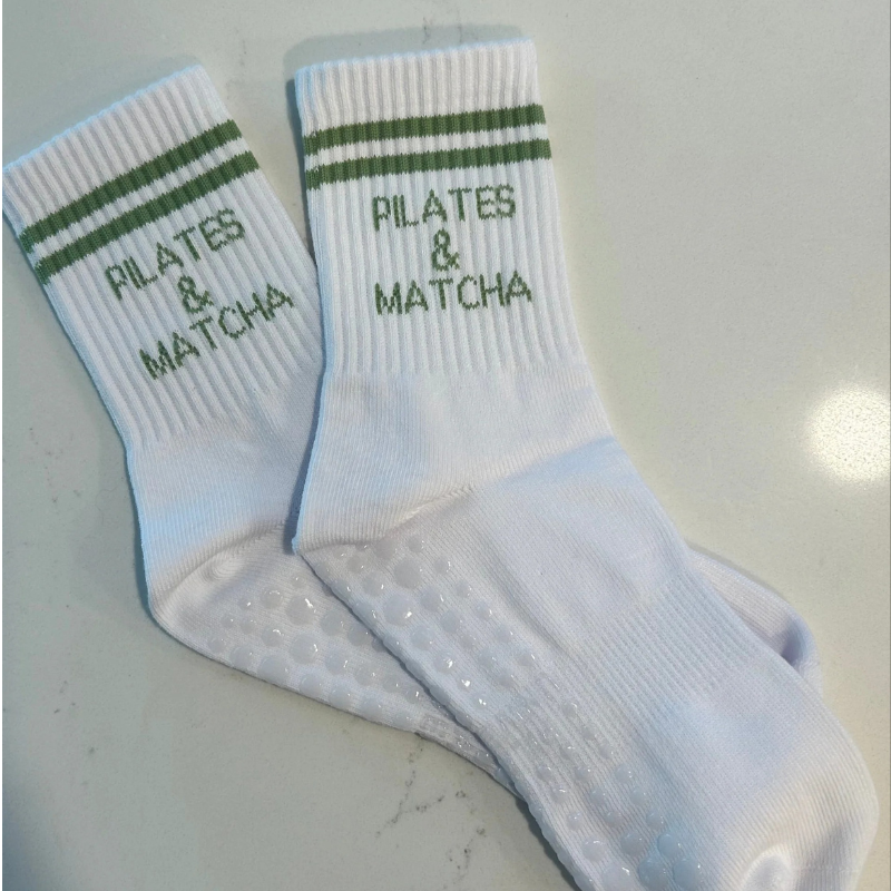 High Quality Text Knitted Stripe Grip Socks Pilates and Matcha Socks Multi Color Soft Cotton Strong Grip JZVINA Factory