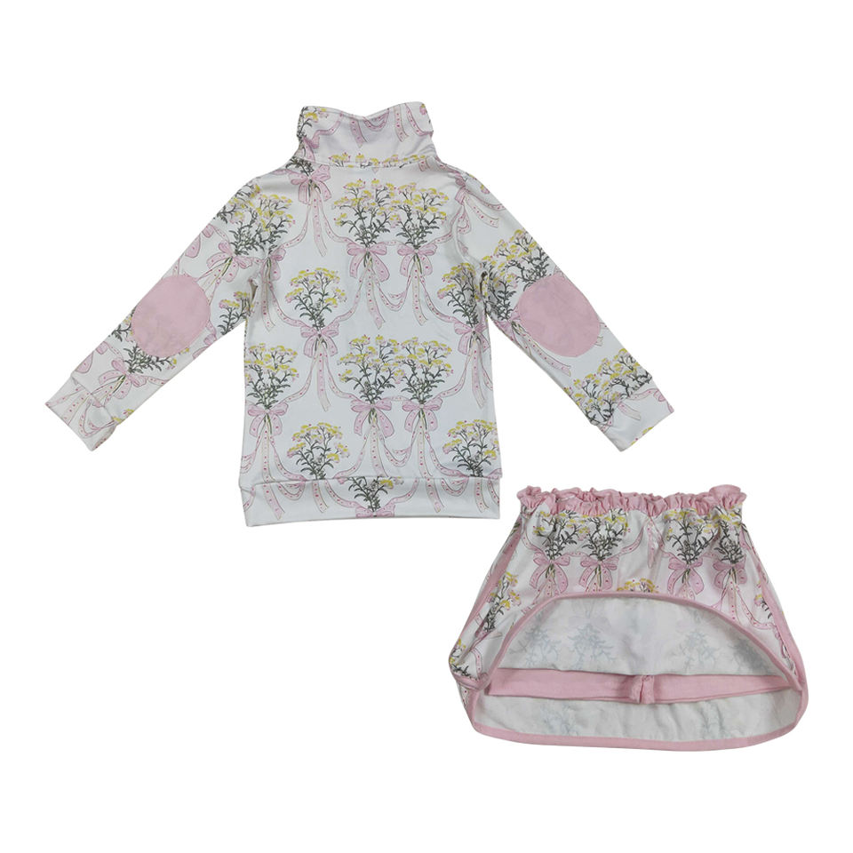 High Quality Toddler Girls Clothing Sets Pink Flowers & Bows Skort Long Sleeve Zipper Outfits for Baby Girls Wholesale Boutique