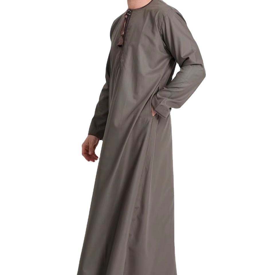 High Quality Traditional Muslim Thobe Thawb for Arab Men Plus Size Breathable Polyester Embroidered Ankle Length Loose Fit