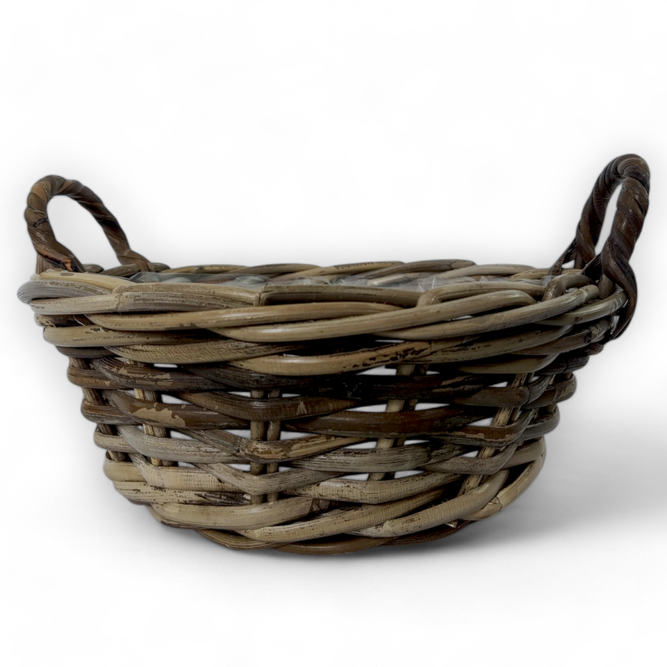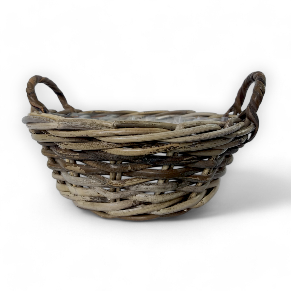 Cheap Traditional Natural Rattan Kubu Grey Fruit Basket with Plastic Liner Functional Storage Baskets for Food