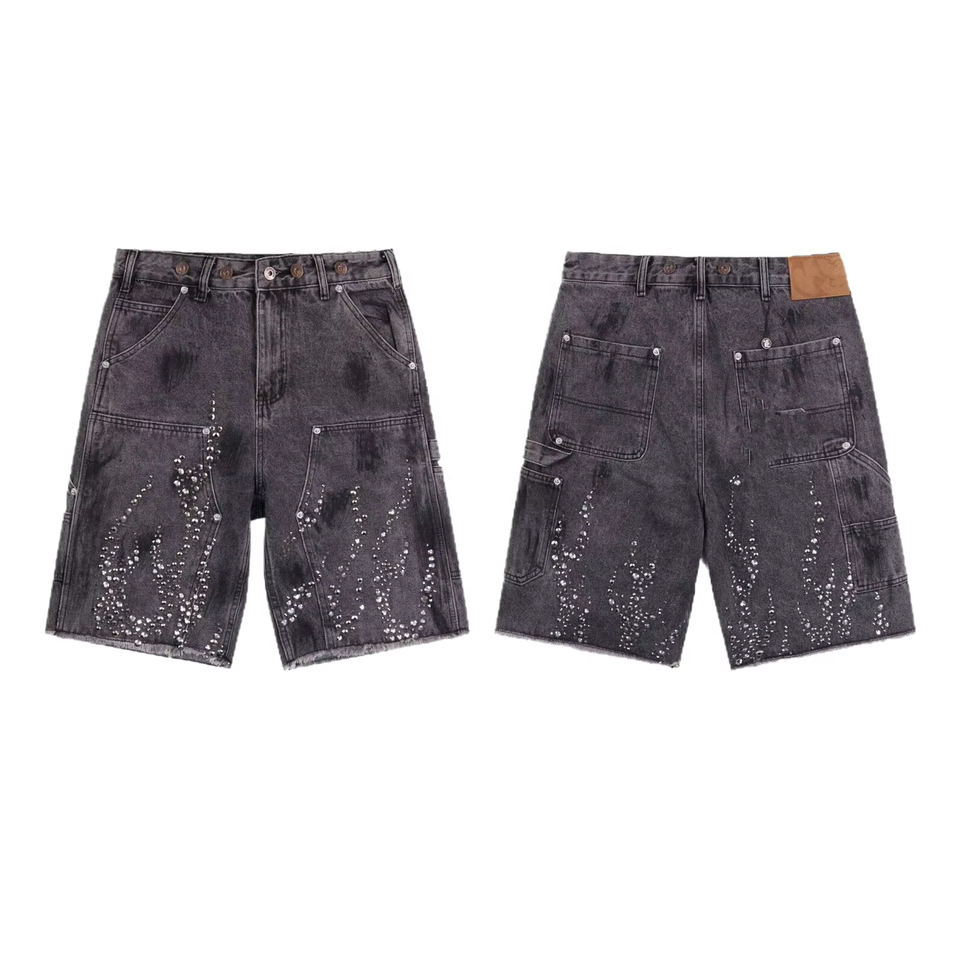 Product name:Custom Men Rhinestone Denim Shorts