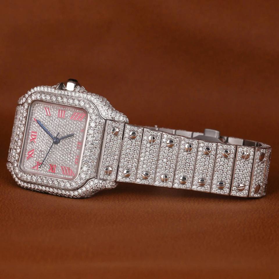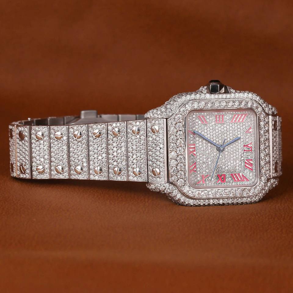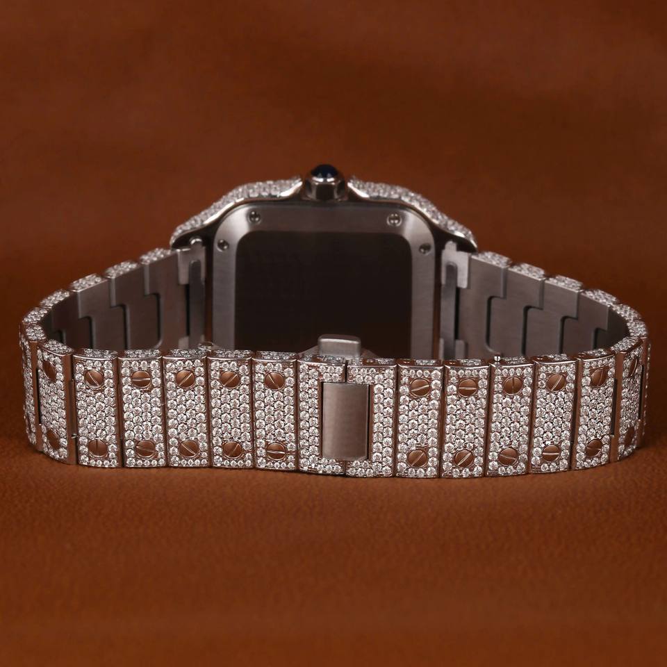 High Quality Trendy Hip Hop Bling Iced Out Watches Luxury Custom Quartz White Gold Moissanite Round Cut Diamond Watch For Men's