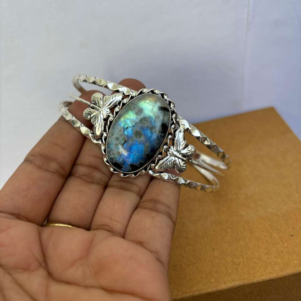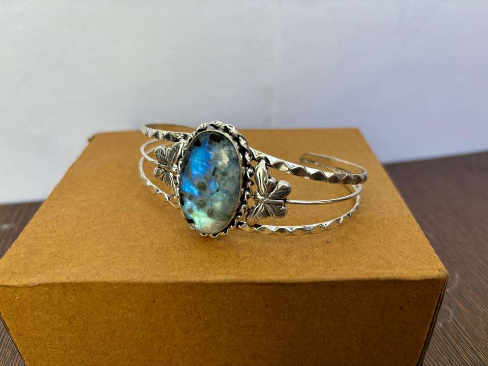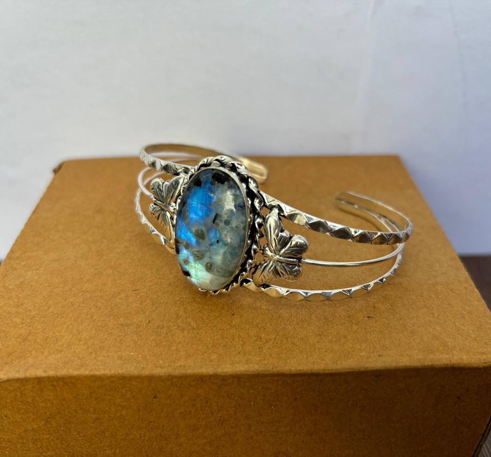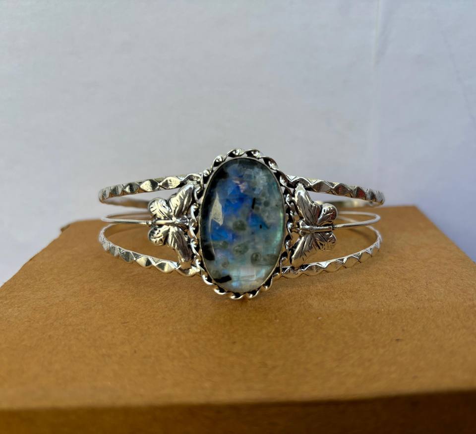 Tourmaline Rainbow Moonstone Silver Cuff Bracelet