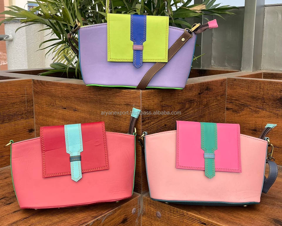 High Quality Trendy Recycled Leather Shoulder Bags for Women's Fashion Luxury Purses Wholesale Colorful Leather Crossbody Bags