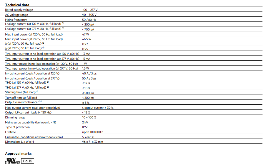 High Quality Tridonics 28002229 Chassis Mount 1.00MA 0-10V IP67 40W Drivers Led Power Supply