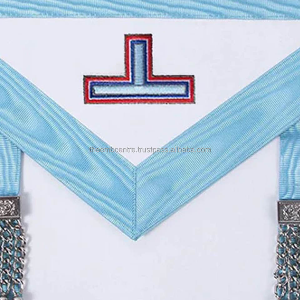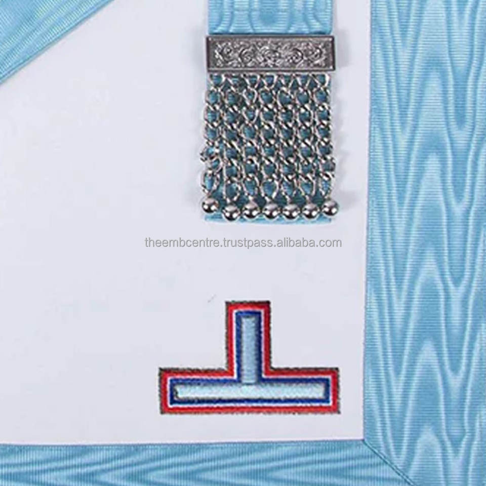 High Quality Turquoise Moire Apron Silver Triple Taus Custom Logo Worshipful Master Emulation Rite English Regulation Fabric