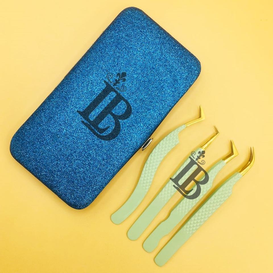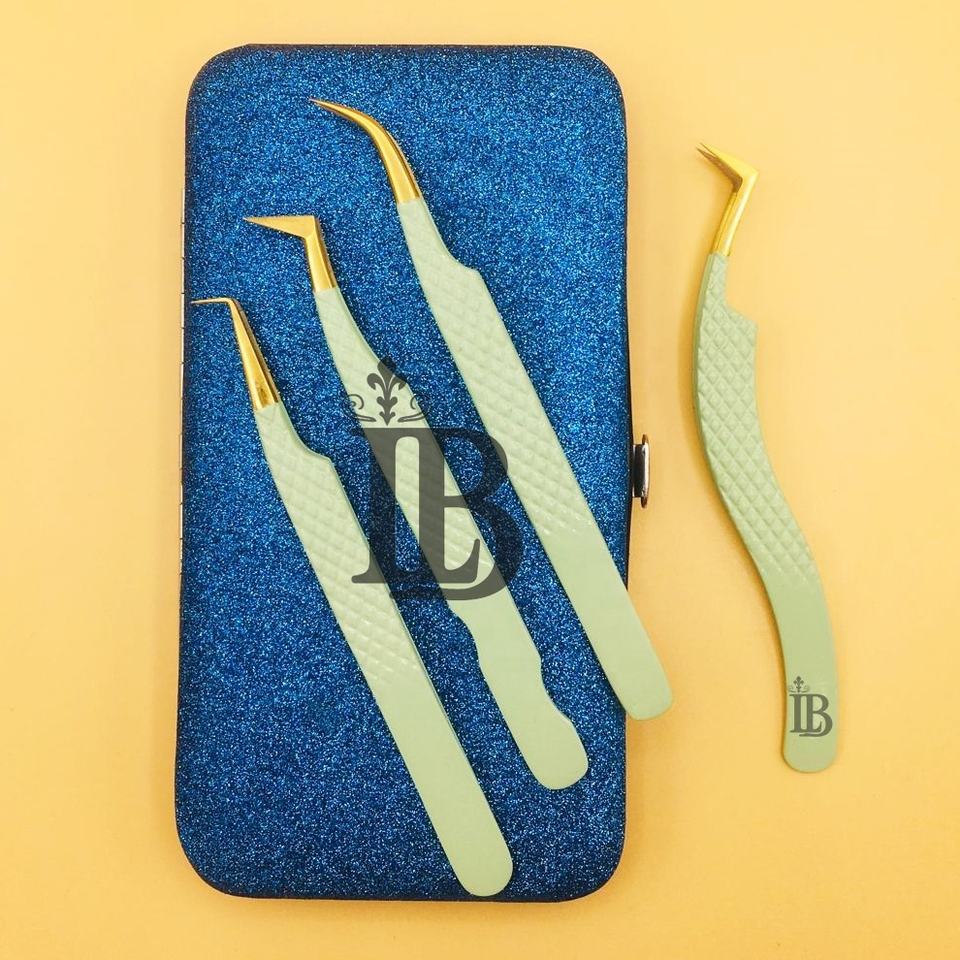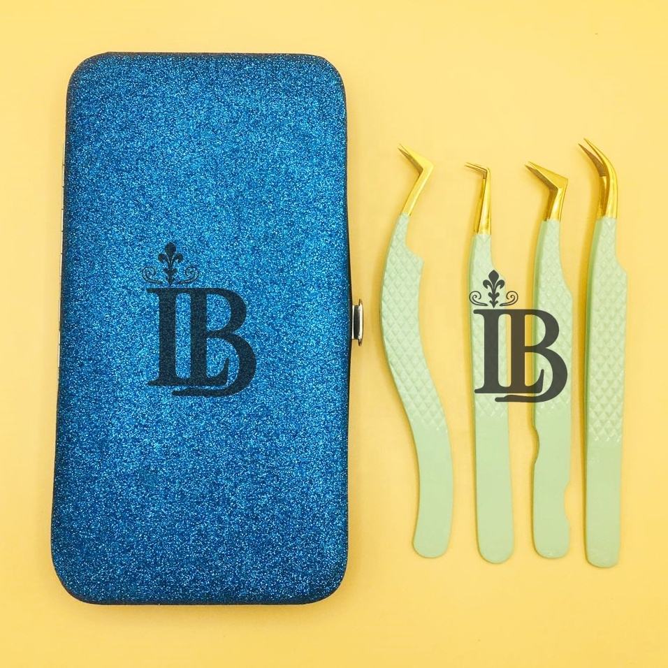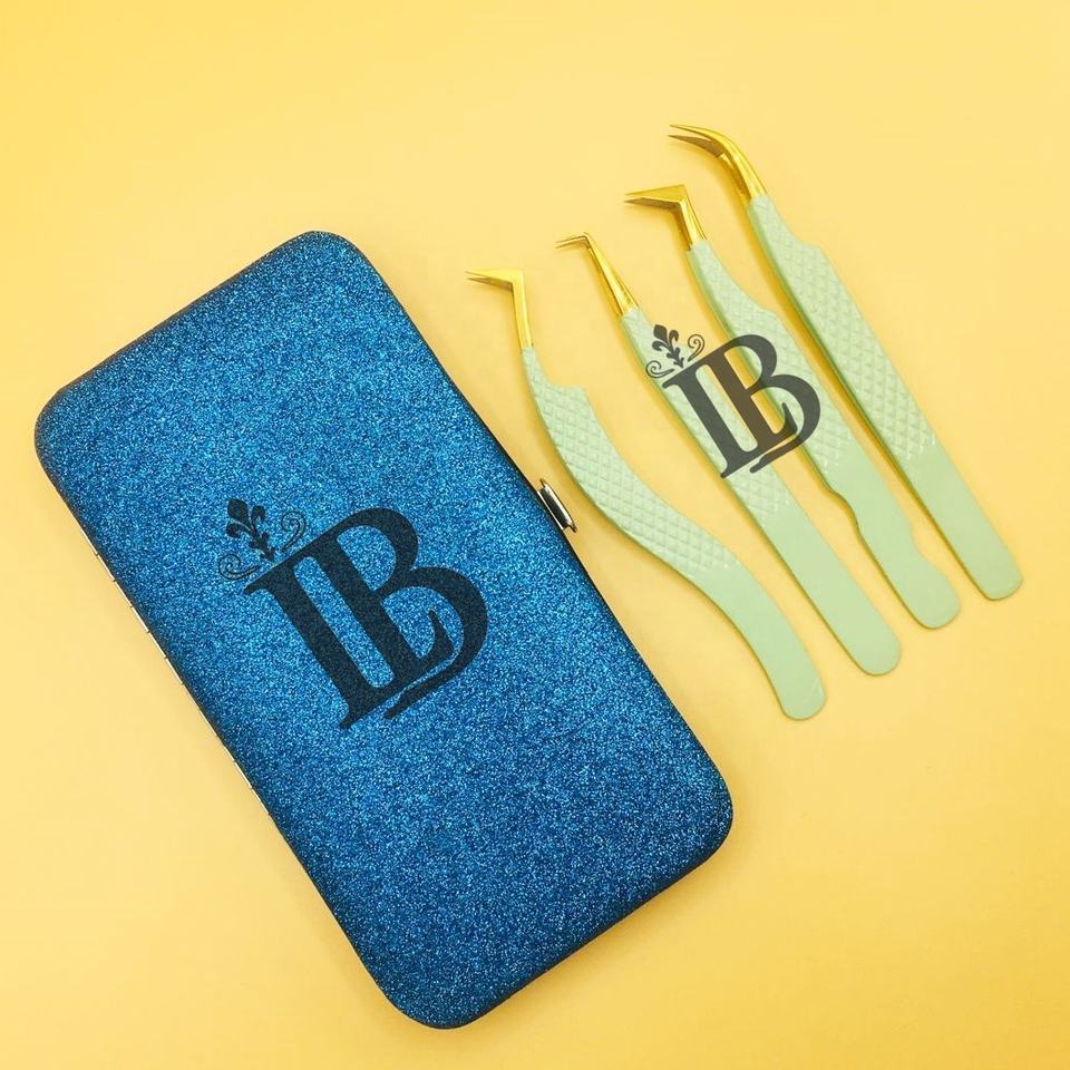High Quality Tweezers Eyelash Extension Tweezers Mink Tweezer For False Eyelash Case Gold Tip Private Label Logo Free Pvc Pouch