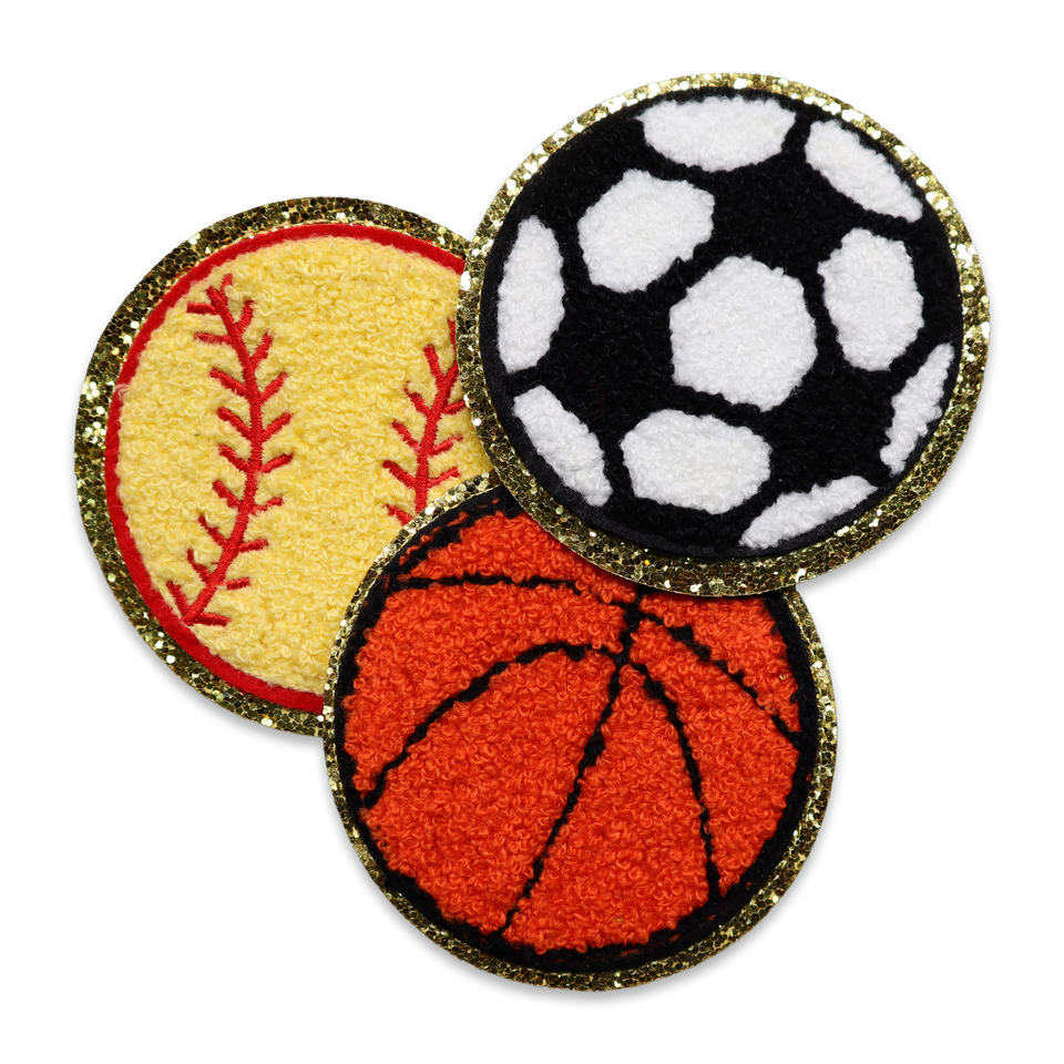 High Quality Twill Fabric Basketball Patch Chenille Sports Iron on Patches With Glitter for Clothing