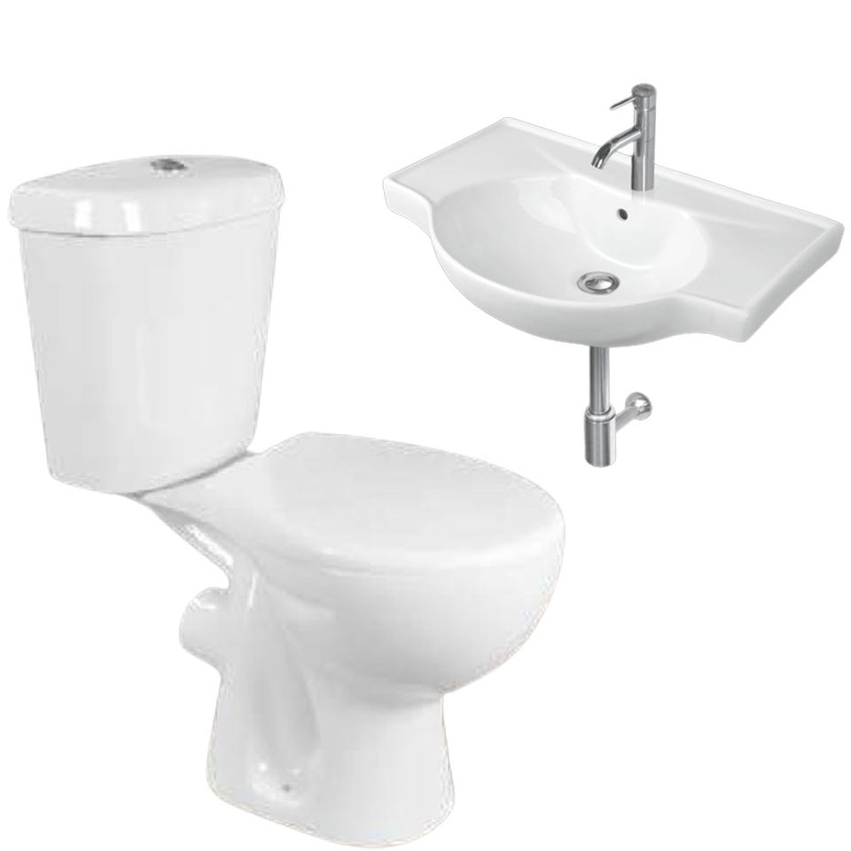 High Quality Two Piece Ceramic Toilet and Wash Basin Set Washdown Italian P-Trap WC & Hand Wash Sink India Sanitaryware Factory