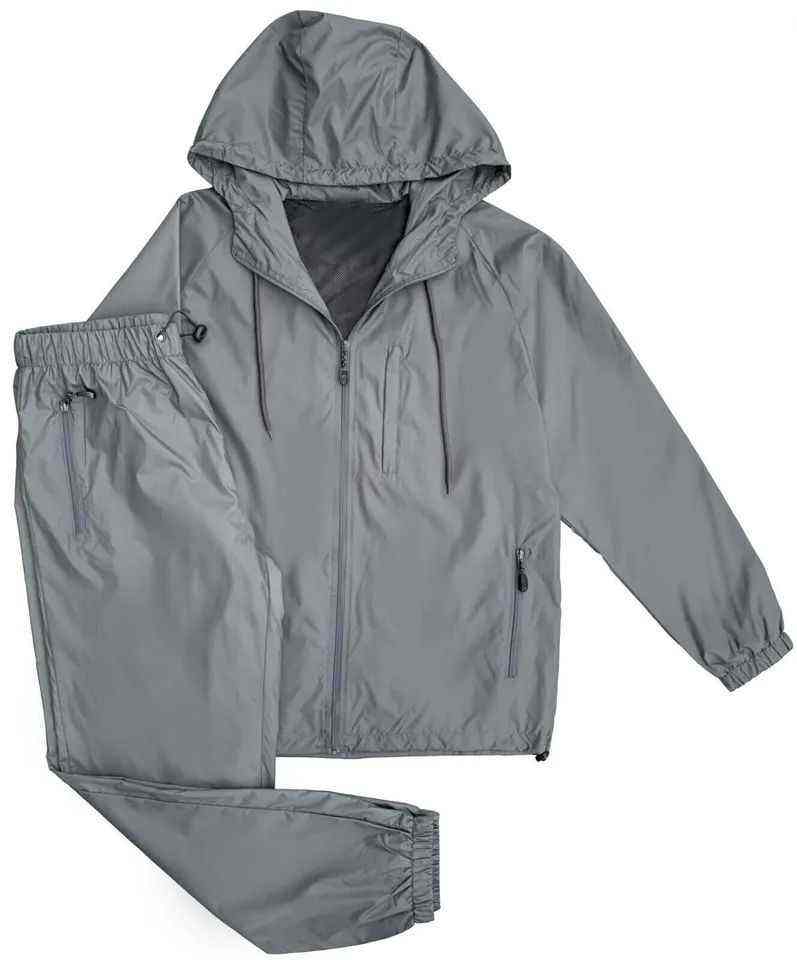 High Quality Two-Piece Polyester Men's Waterproof Windbreaker Suit Full Zip Training Wear Printed Rhinestone Technics for Spring