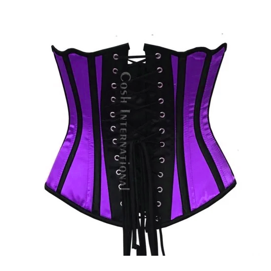 High-Quality Underbust Steel Boned Waist Training Purple Satin Corset With Black Satin Boning | Customized Corset Supplier