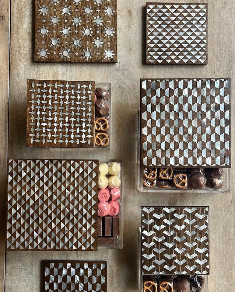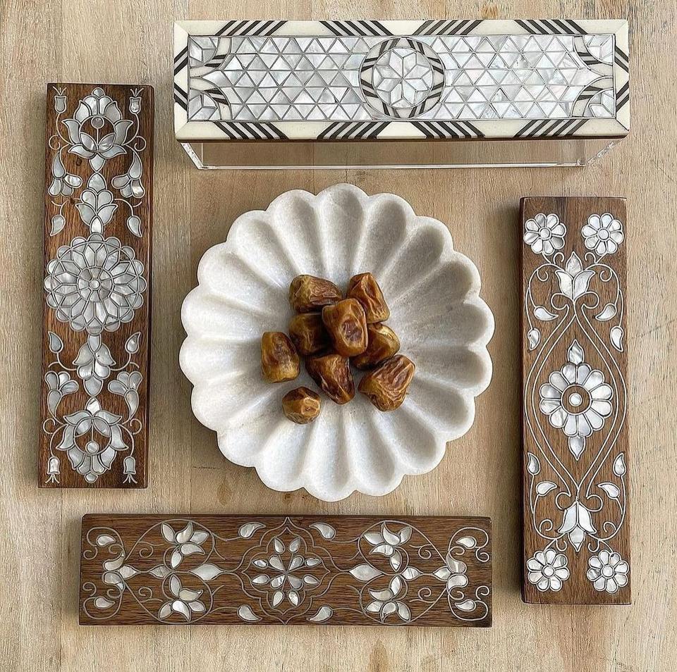 High Quality Unique Design Mother of Pearl Inlay Lid Container Ramadan Gift for Dessert Storage Wood Home Decor