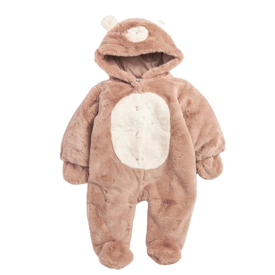 High Quality Unisex Baby Jumpsuit Winter Newborn Zipper Teddy Lined Suede Jumpsuit Cute Casual Print Plain Contrast Collar