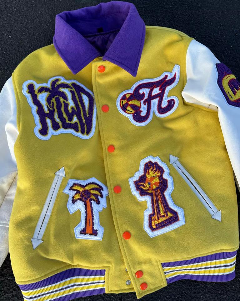 High Quality Unisex Custom Leather Sleeve College Varsity Jacket Turn Collar Chenille Embroidery Patches Finished for Men