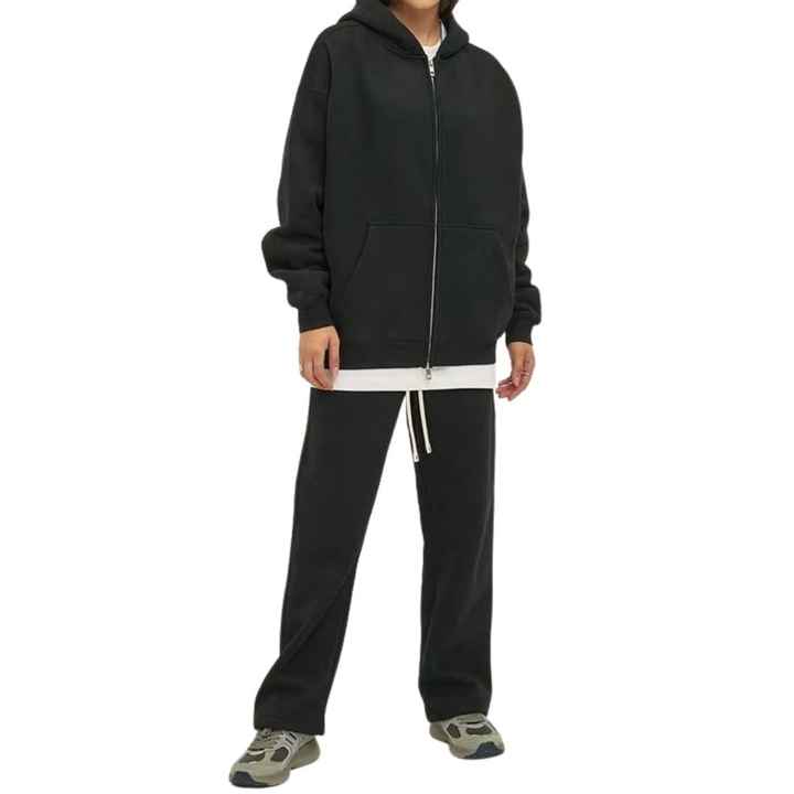High Quality Unisex Oversized Fleece Tracksuit Casual Zip Up Hoodie and Jogger Pants Set wholesale for autumn/winter season