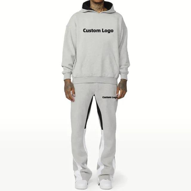 High Quality Unisex Stacked Sweat Pants Sweatsuit Hoodie Sets Custom Puff Print for Men