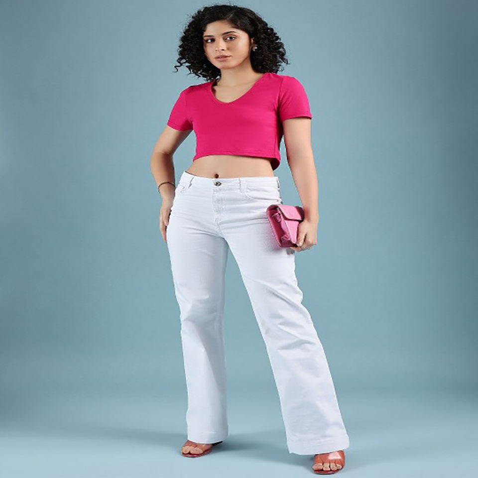 High Quality V-Neck Crop Top for Women Custom Short Sleeve Mini Length Streetwear Woven Fabric Lace Ribbon Button Decorations