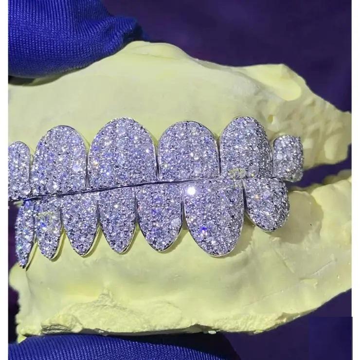 High Quality VVS Moissanite Bezel Setting Brilliant Cut Grillz 925 Sterling Silver Black Rhodium Plated 16 Teeth Unisex Body